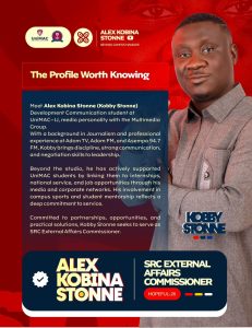 Driven by a vision that goes beyond campus mandate, Alex Kobina Stonne continues to champion partnerships, create opportunities, and advocate solutions that empower young people. His leadership journey is defined not just by ambition, but by a consistent commitment to impact, integrity, and service to others.