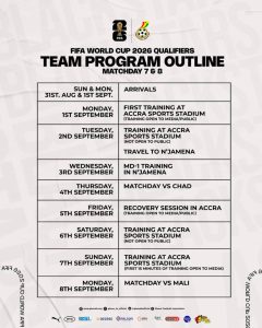 The Ghana Football Association (GFA) has unveiled the official team program for the Black Stars as they prepare for their 2026 FIFA World Cup qualifiers against Chad and Mali in September.