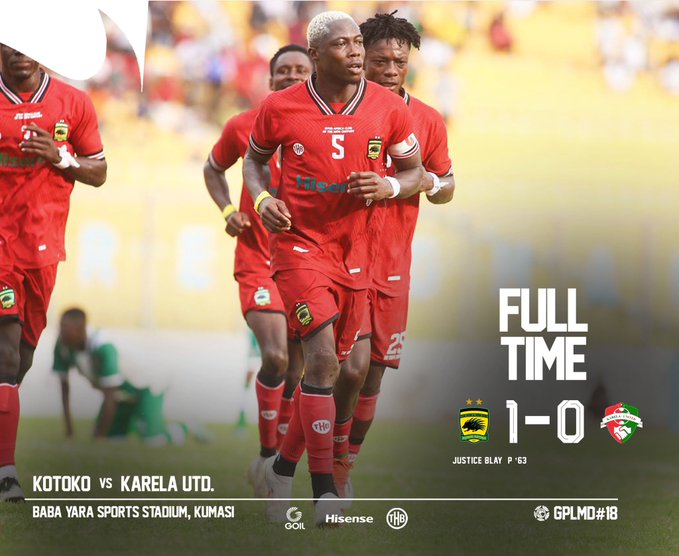 Captain Justice Blay converted a second-half penalty, ensuring Kotoko secured all three points and climbed to the top of the league table.