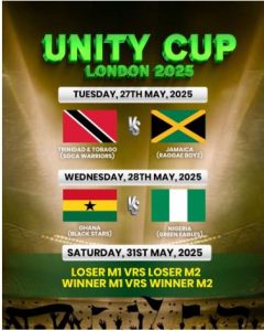 Ghana, Nigeria, Jamaica, and Trinidad & Tobago—will converge in London this May to compete for the highly anticipated Unity Cup 2025.