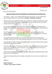 In a press statement issued by GOC President Richard Akpokavie, the Committee reiterated its unwavering commitment to promoting sports development, nurturing young talent, and providing opportunities for Ghanaian athletes to excel on the international stage.
