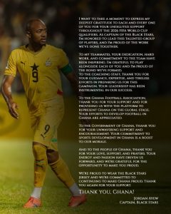 In a message shared through the Black Stars’ official social media platforms, Ayew expressed deep gratitude to the supporters for their constant encouragement and highlighted the collective effort behind Ghana’s qualification success.