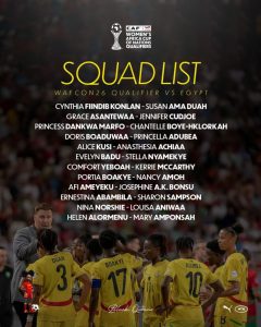 Up front, the team’s attacking threat will be spearheaded by seasoned forwards Alice Kusi, Doris Boaduwaa, Princella Adubea, and Mary Amponsah, who are expected to provide the goals needed to power Ghana’s qualification hopes.