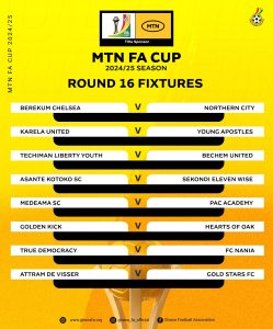 The draw for the Round of 16 of the 2024/25 MTN FA Cup was conducted earlier today at the GFA Secretariat, presenting some thrilling and tricky fixtures for football fans.