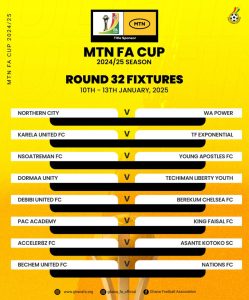 The Ghana Football Association (GFA) has unveiled the matchups for the Round of 32 in the MTN FA Cup, following the official draw on Thursday, December 19, 2024.