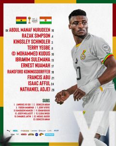 Coach Otto Addo has six changes to his starting eleven for the Niger game.
